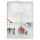 Gedokte zeilboten zijn een schilderij van de waterverf waarin twee zeilboten staan die dicht bij de kust zijn aangemeerd met een kade en een boottoir aan de zijkant. Water is kalm en de lucht heeft drie vogels die vliegen. Een beetje kustlijn kan aan de zijkant gezien worden. Bleke kleuren blauw en grijs overheersen het schilderij met kleuren die rood en bleek geel zijn. Gedrukt van een origineel kunstschilderij op papier door JC Prida. 2008