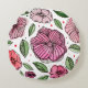 Waterverf en inktbloemen - roze en groen rond kussen