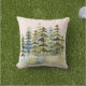 Waterverf Foggy Green Pine Forest Buitenkussen