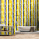 Waterverf geel grijs en wit behang. Geweldig voor elke kamer. Ontwerp van met de hand geschilderde grunge stijl verticale strips in geel grijs en wit zorgen voor een mooie moderne look voor elke kamer.