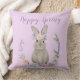 Deze zoete kussen hebben een prachtig geschilderd konijnenkonijn met een waterverf konijn, met bloemen op haar hoofd, en in een kreet zitten. Typografie bovenaan zegt Happy Spring in lavender met een witte rand. De omgekeerde kant heeft een plaats voor u om een speciaal bericht toe te voegen en het te personaliseren. Dit zou een mooi paascadeau zijn voor Moms en Grammy's.