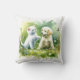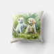 Waterverf speelse witte kitten met een puppy in het gras met vlinders