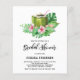 Tropische en feestelijke tropische bridale doucheuitnodiging. Het is voorzien van waterverf kokosnoot, roze hibiscus, plumeria en tropische groen. Deze kokosnootuitnodiging is perfect voor tropische en luau-vrijgezellenfeesten. Personaliseer u door uw gegevens toe te voegen.