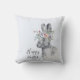 lente-themed-gooikussens hebben grijze waterverf bunny met bloemkroon-afbeelding en aanpasbare Happy Easter-tekst op pastelblauwe achtergrond