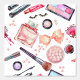 Dit ontwerp biedt de bijbehorende schoonheidsmiddelen in een zacht waterverf patroon.