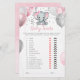 Deze baby is voorzien van een rode en grijze babymeisje-olifant met ballonnen en confetti. U kunt de gamevragen personaliseren door op de knop Aanpassen te klikken.