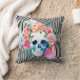 Dit ontwerp is voorzien van een waterverf schedel omgeven door bloemen met een zwarte gestreepte achtergrond aan de voorzijde, met een bijbehorende spleet op de achterzijde naar monogram met initialen.