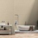 MEDIUM SCALE 6 inch herhalen (3" plaid vierkanten in een halve druppel). Rustieke textuur moderne stijl met losjes handgeschilderde waterverf lijnen in kleuren variërend van crème, gebroken wit, beige tot bruin over een neutrale grasdoek zoals subtiele gestreepte textuur ideaal voor alles van moderne, industriële, tot organische cottagecore stijlen. Kunst door internationaal erkende kunstenaar en ontwerper, Audrey Jeanne Roberts ©. Audrey Jeanne's artwork is beschikbaar voor licenties via MHS Licensing.