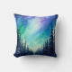 Elegante Waterverf Celestial Northern Lights aurora borealis met prachtige blauw, paarse en groene kleuren en winterlandschap