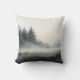 Een etherische serene landschap waterverf gooien kussen, van bos groenblijvende pijnbomen en mist over de weide. Een perfecte stijl voor een minimalistische, op natuur geïnspireerde setting.