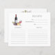 Elegante waterverf rode wijn en kaas 'Cheers to love' Vrijgezellenfeest receptenkaart.