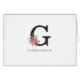 Het ontwerp is voorzien van een aangepast monogram initiaal en naam met een handgeschilderde waterverf boho zalmroze roos en vederclip kunstaccent.