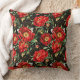 Waterverf schetste detailpatroon van heerlijke rode pioenenrozen, pioenrozen, kleine witte gipsbloemen, contouren van gouden geometrische vormen op een donkere achtergrond