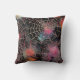 Mooie multicolour waterverf spiderweb ontwerp gooi kussen. Dubbelzijdig afdrukken. Zwarte achtergrond met poppen van roze, rood, sinaasappel, groen en blauw