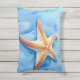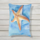 Een waterverf tekening van een zeester met een blauwe achtergrond. De zeester ziet eruit alsof hij onder water staat in deze tekening. Het kan een goed ontwerp zijn om op je kussen te gebruiken, vooral als je ook van zeesterren houdt!