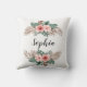 Kussen voor buitengebruik met trendy tropische waterverf met florale maag en aanpasbare naam of monogram.