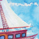 Waterverf zeilschip patroon op blauwe golvende achtergrond.Reizen cruisepatroon met wit zeiljacht in rij | © en ® Bigstock® - Alle rechten voorbehouden.