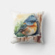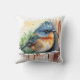 Waterverf vogel met een mix van blauw, sinaasappel en witte veren zitstokken op een houten hek met een achtergrond van groen