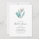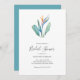 Deze unieke bruiddoucheuitnodiging is voorzien van de bruid om de naam te zijn die is ingesteld in een stijlvolle, handgeschreven script typografie met gebeurtenisdetails in een klassieker met kool grijs serif lettertype op een scherpe witte achtergrond met mijn oorspronkelijke waterverf vogel met paradise bloemenkunst in tinten blauw, groen, oranje en geel. De uitnodigingskaart keert terug naar een aanvullende turkooisblauwe kleur. Een botanische maar elegante keuze voor casual strand- en kustdieren met een tropisch Hawaii-thema. Om mijn volledige trouwkantoorbenodigdheden te zien, bezoek DoTellABelle op Zazzle.
