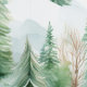Waterverf rustieke bossen pijnbomen en zachte sneeuwval.