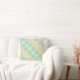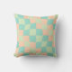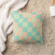 Stijlvol werpkussen met een golvend geruit patroon in zachte pastelkleuren van groen en perzik. Voegt een unieke en eigentijdse touch toe aan elke ruimte.