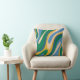 Wavy Loops Retro Abstract Patroon Blauw Groen Kussen
