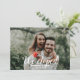 Voeg een leuke foto toe van de speciale dag, toen de tijd goed was en de rechtbank om de hoek zat. Deel het goede nieuws met je familie en vrienden. Het beste wenste aan het fantastische pasgetrouwde stel! Op de achterzijde is een mooie oranje bloemachtergrond te zien. Foto van Placeholder: Rae Hobins van Unsplash, bedankt!