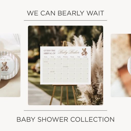 Voeg een speels moment toe aan je douche met dit charmante kalenderspelbord. Met zachte waterverf strepen, een teddybeer en een elegant script nodigt het gasten uit om de aankomstdatum van baby te raden - een zoete aandenken om na de grote dag te koesteren.