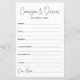 Deze eenvoudige, zwarte en witte, moderne, minimale, handgeschreven script Spaans Advice & Wishes/Consejos y Deseos sheets zijn perfect om vrijgezellenfeest, repetitief diner of huwelijksgasten te laten invullen voor het gelukkige paar. Mensen zullen graag de herinneringen krijgen - ze maken het zo makkelijk om liefhebbende woorden van advies en welwillendheid achter te laten. Ze zullen nog jaren worden gekoesterd.