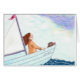 Meisje in kleine houten zeilboot met hond