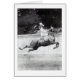 Een foto van een Victoriaans vrouw die op een paard rijdt dat door de lucht springt terwijl ze een grote glimlach glimlacht om iedereen te zien. Het bericht binnen de kaart: Wees voorzichtig met dat hoge paard, lieverd. Het is een lange weg naar beneden."