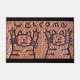 Welcome mat pair of friendly cats. Pair of friendly tiger striped pet cats with joy in welcoming guests to the house. Customize text, image size and style on your kitties home decor rug feornt or bakdoor mat. Great gift idea for cat lovers and owners alike. Cute welcoming message.