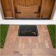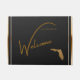 Welcome your guests in style with this classy doormat. The door mat features an elegant design with a black background and rich gold-colored Florida State map. The fancy script text reads "Welcome to our retirement home." The doormat is lovely for any Florida resident and makes a perfect gift for those with classic refined taste! Available in two sizes for your covered front porch, deck, lanai, laundry room, mud room, garage, or sunroom! Special design requests accepted.