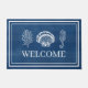 Een welkome kustkoraal, schelpen en een Seahorse Blue Achtergrond Deurmat. Dit ontwerp is voorzien van de witte silhouetten van een prachtige tropische schelpen, koraal en het zeepaardje op een blauw waterverf getextureerde achtergrond. Het kunstwerk en ontwerp op deze deurmat is gemaakt door Totally Coast designer, Jillee K. Klik hieronder gerust op "Bericht" als u vragen of vragen heeft. Jillee zou graag van je horen en weten wat je lief zou hebben.