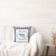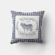 Stijlvolle gooi kussen beschikt centrum "Welkom op de boerderij" tekst met boerderij dierlijke silhouetten en een blauwe gingham achtergrond