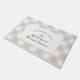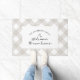 Welkom bij ons huis moderne script beige en witte natuurlijke buffel check gepersonaliseerde deurmat ontwerp.