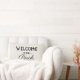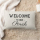 Welkom bij onze Porch aangepaste tekst rustieke Lumbale kussen zwarte tekst, off witte achtergrond