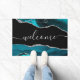 Welkom Chic Blauwgroen Agate Silver Glitter Script Deurmat