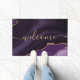 Maak kennis met uw gasten in stijl met deze gepersonaliseerde paarse en gouden glitteragate doormat met de groet "welkom" in de hand geschreven moderne faux goudscriptkalligrafie. Maakt een elegant huisverwarmingsgeschenk voor die speciale vrouw in je leven.