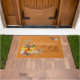 Verwelkom uw gasten en het herfst seizoen met deze vrolijke deurmat. Het bloemige ontwerp, op deze mat bestaat uit pompoenen en een assortiment van herfstbladeren en bloemen. De tekst "WELKOM Herfst" kan worden gepersonaliseerd. U kunt de fel gebrande oranje achtergrond aanpassen met een kleur naar keuze.