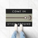 Lacrosse deurmat groet voor spelers, touringcars en teamventilatoren.