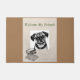 Pug Dachshund-hond in een bril met boeken welkom mijn vrienden mat