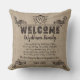 Welkom Monogram Rustic Logo Typografie Burlap Kussen