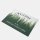 Een mooi, bijgetrouw doormat met "Welkom", plus uw persoonlijke familienaam en -cabine, een lib, een huisje of een andere gewenste tekst. Dit aangepaste ontwerp kenmerkt kunstwerk van een dennenbos silhouet in schaduwen van groen bos en jager. Voel me vrij om mijn ontwerperwinkel te bezoeken om meer objecten en design als deze te zien. Bedankt...