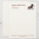 Een lichtbeige gekleurd letterhoofd met een afbeelding van een kalf snijpaard en rijder op de rechter bovenzijde en aanpasbare tekst op het linksboven- en onderste midden, voor elke ruitersport. Ook envelop en visitekaartje zijn beschikbaar.