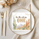 A western-themed first birthday invitation featuring desert landscapes, cacti, rope details, and rustic typography. Designed for a “How the West Was One” celebration, this invite sets the tone for a stylish cowboy or wild west birthday party. Perfect for boys’ first birthdays and western-inspired event themes.