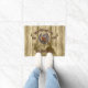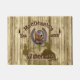 Een faux-houthakkersdeur heet mat welkom voor je westerne of boerderijhuis, met geluksvochtig hoefijzer en cowboylaarzen.