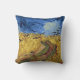 Een kunstkussen met het olieverfschilderij, Tarweveld met kraaien (1890), van Vincent van Gogh (1853-1890). Een schilderachtig pad dat door goudtarwevelden loopt onder een uitgestrekte en levendige blauwe lucht, terwijl een betoverende kraaienkudde in de lucht danst. De mix van rijke, aardse tinten en levendige blauwe tinten creëer is een visueel opvallende en emotioneel tot de verbeelding sprekende compositie. Hij beschreef zijn laatste schilderij, hoewel historici hierover van mening verschillen.