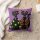 Deze zwarte katten zullen je met plezier laten zeuren! Ze zijn gedecormeerd in heldere groene sterren en oranje zwengels op een paarse achtergrond. Ze vormen een perfecte aanvulling op je Halloween decor.