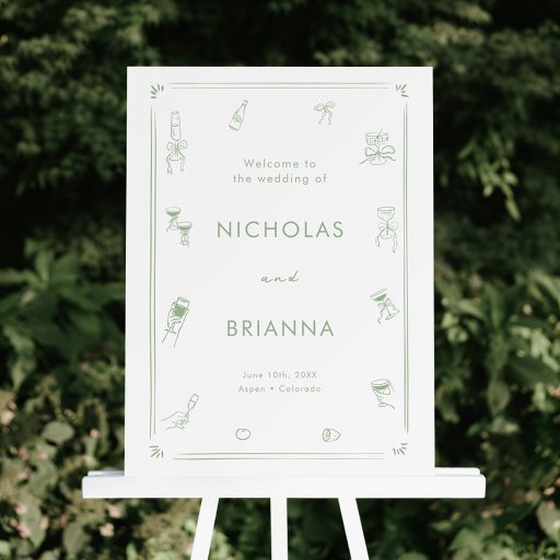 Voeg een vleugje charme toe aan uw receptie met dit gepersonaliseerde grillige eigenzinnige handgetekende groene huwelijksmenu. Perfect voor het presenteren van uw gerechten, dit huwelijksmenu combineert creativiteit en elegantie. Verken eindeloze ideeën voor huwelijksmenu's met aanpasbare trouwmenukaarten die zijn ontworpen om bij uw feest te passen. Ideaal voor stijlvolle huwelijksmenu's die passen bij een salie groene bruiloft, groene bruiloft thema, groene bruiloft, of salie groene bruiloft thema. Ook perfect voor een witte en groene bruiloft, een Italiaanse bruiloft, of een tijdloze oude geld bruiloft.